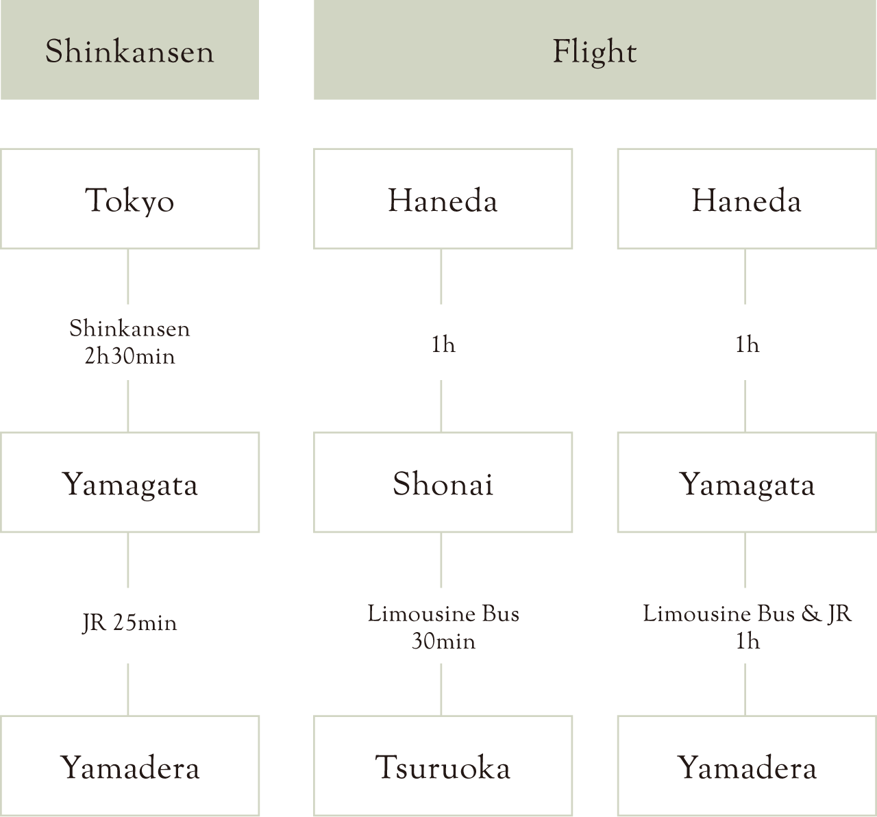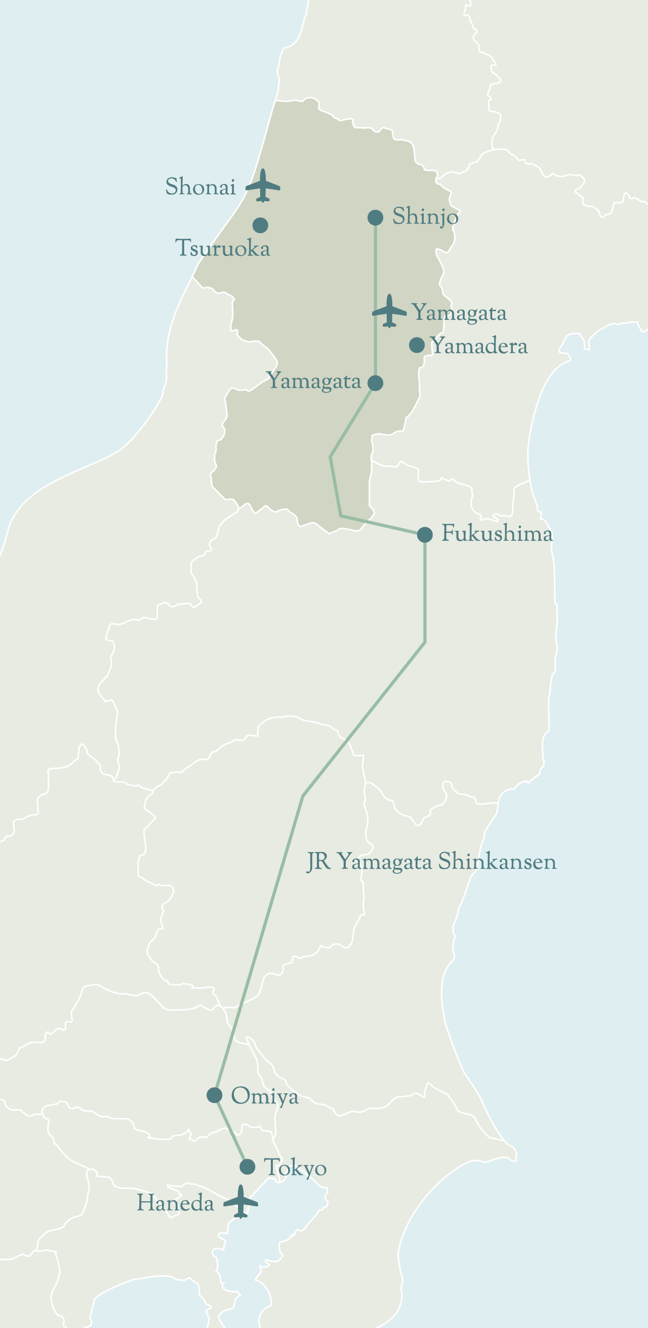 From London, Paris, New York, and Los Angeles, seamless connections via Tokyo (Haneda Airport) open the gateway to northern Japan. You can reach Yamadera by Shinkansen in about two and a half hours or via Yamagata Airport. Flights from Haneda to Shonai Airport lead to Tsuruoka—home to the living spirit of the yamabushi.